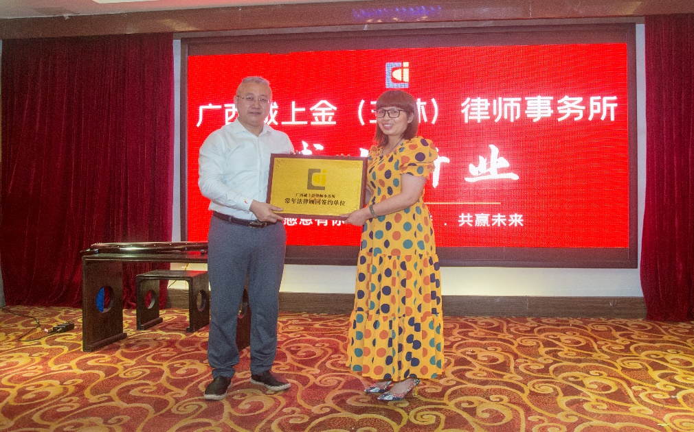 晚宴过程中,由律所合伙人依次向广西兴都建设工程有限公司、玉林市远冯商贸有限公司等合作单位颁发法律顾问签约牌。未来,诚上金玉林分所将在重大民商事案件、公司治理、基金、并购、法律顾问等专业领域为玉林人民提供专业的解决方案。