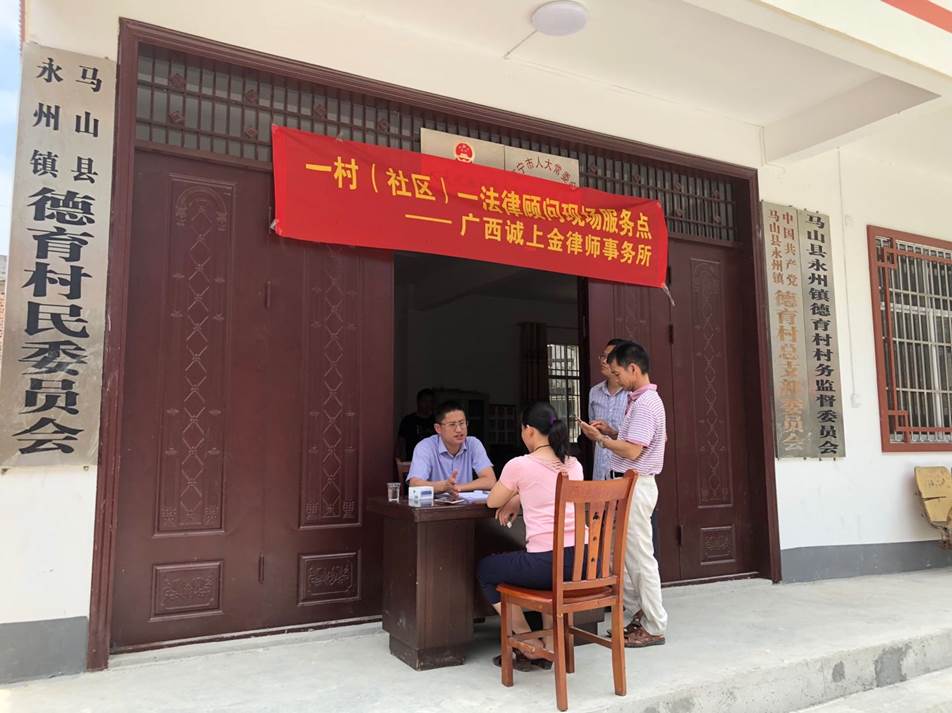 2018年5月21日,我所全体律师第一次为马山县的顾问村提供法律服务,并在马山县开展“一村一社区一法律服务”的宣传活动。